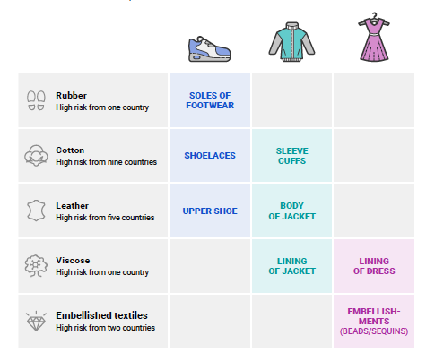 The report also explores how complex the industry’s supply chain is and illustrate how multiple materials that are themselves at high risk of forced labor are used to make a single garment or item.