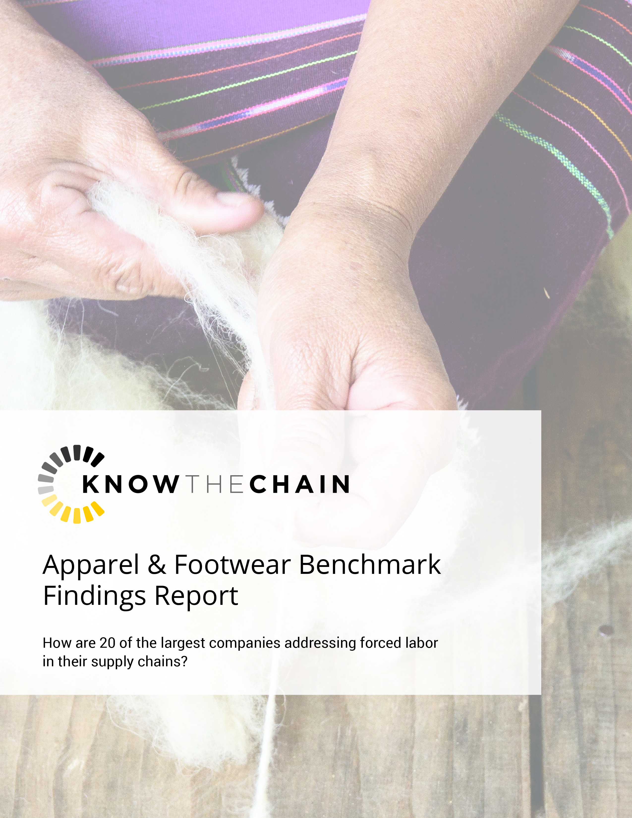 Humanity United’s project, KnowTheChain, published its third benchmark of 2016 today, ranking the 20 largest apparel and footwear companies on their efforts to address forced labor in their supply chains. While the average score (46/100) was higher than other sectors benchmarked by KnowTheChain earlier this year – Information and Communications Technology (39/100) and Food and Beverage (30/100) – the report indicates there is still significant room for improvement.